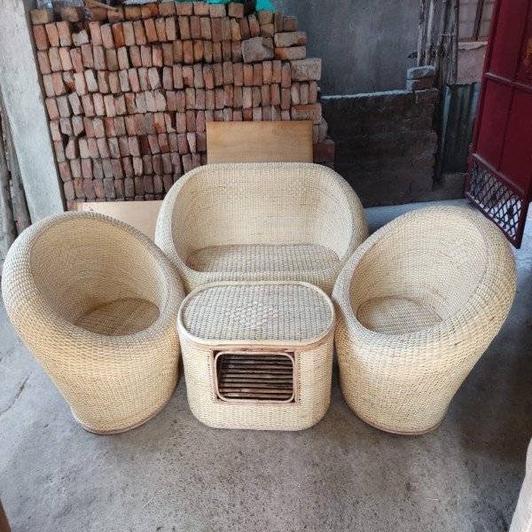 This apple sofa set is made of natural cane for the production it take 10 working days for an artisan to shape and craft the cane to finished products do not go through any process involving machines.
